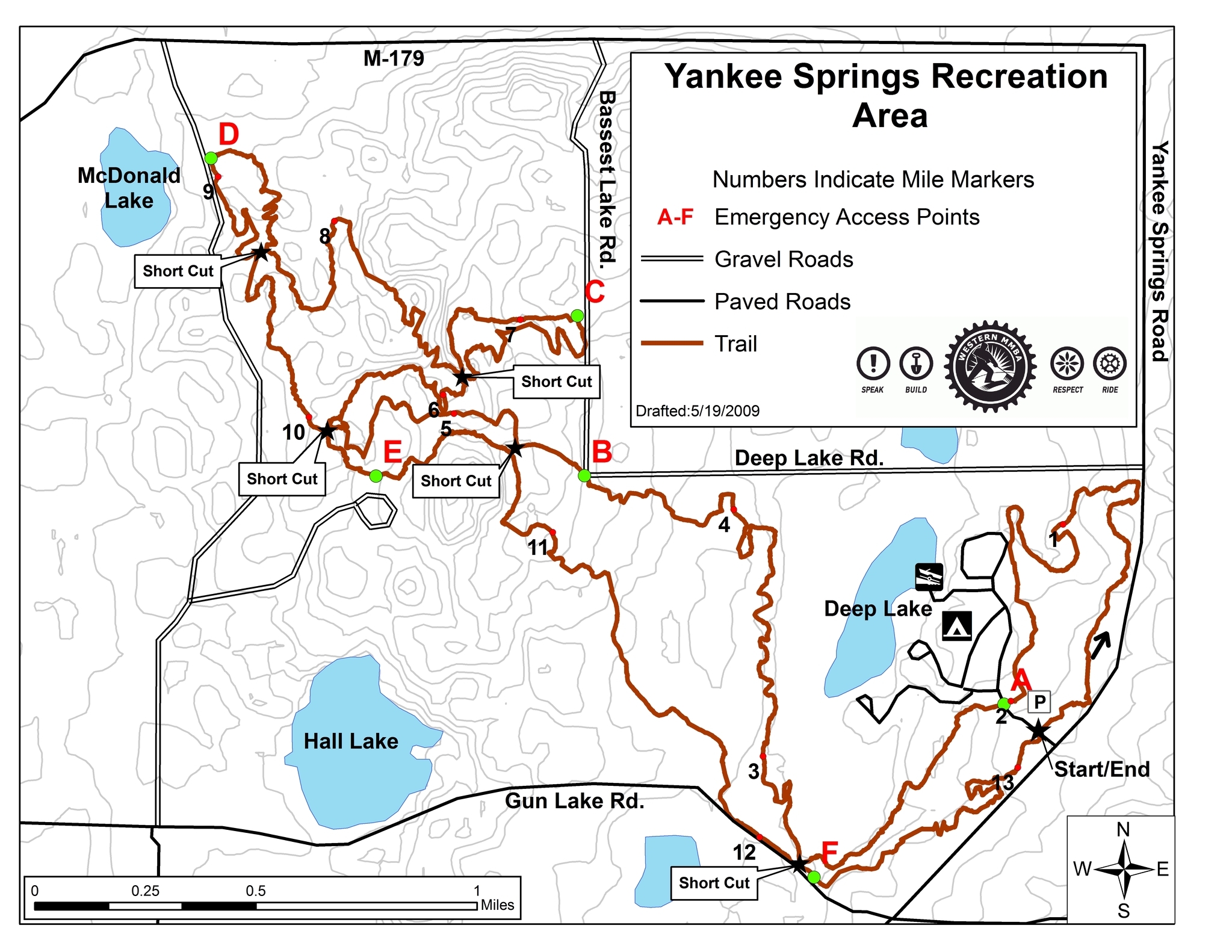 The Yankee Springs Time Trial is held in the Deep Lake Campground, within the heart of the Yankee Springs Recreation Area. Registration, Team Row and the starting chute are located at the Southern edge of the campground.
